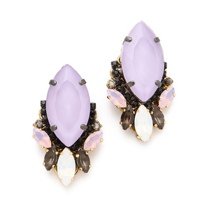 Add a muted candy color to your ears with the cluster earrings from Erikson Beamon. The delicate facets of opalescent Swarovski crystals add a twinkling effect to these purple and punkish jeweled studs.