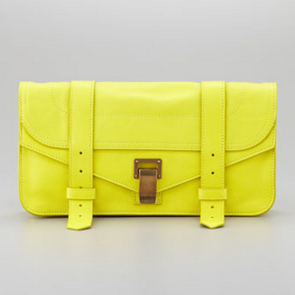 Sporting a bright neon shade, the yellow clutch from Proenza Schouler will be your go-to bag for spring. Fashioned in soft calfskin and brass hardware, this handbag will add a cheerful pop of color to any outfit.