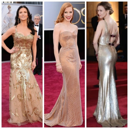 Embodying the essence and glitz of the evening, gold numbers stood out on the red carpet. Embracing the trend, Catherine Zeta Jones in Zuhair Murad, Jessica Chastain in sequin mesh by Armani Privé, and Renee Zellweger in Carolina Herrera.